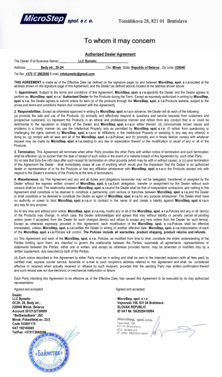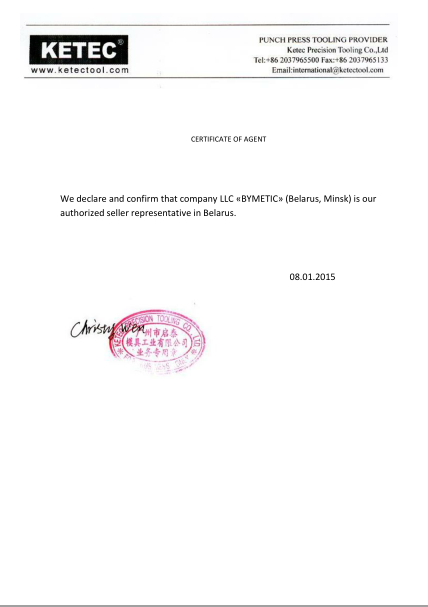 Сертификат официального партнера Yawei Nisshinbo (Китай-Япония)